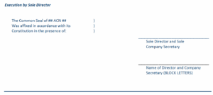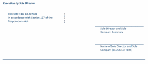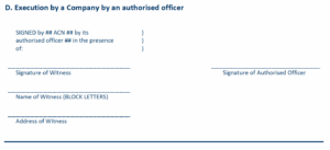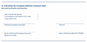 A company can also set rules on how to execute a document through the company’s Constitution and vary these rules from time to time to suit the company’s business needs. Rules can also be made in the Constitution to provide for agents or representatives who are not company officers to be appointed to sign on behalf of the company whether in relation to all company transactions or limited to a specified type of transaction.