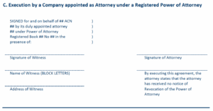 This arrangement is particularly useful for large companies who have a large volume of transactions where it would be impracticable for a director or company secretary to sign off on every one of them. Whoever is appointed as the company’s agent or representative must have the required authority to sign on behalf of the company. This authority is usually provided by a board resolution or alternatively by a registered Power of Attorney.